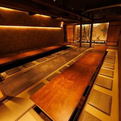 洗練された和空間で間接照明が暖かく照らす落ち着いた空間の個室を多数ご用意しております。少人数様向けの個室から団体様向けの宴会個室まで幅広く取り揃えているため、様々なシーンでご利用いただけます。お気軽にお問い合わせください。